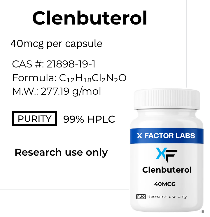 Clenbuterol is a synthetic β2-adrenergic agonist commonly used in research to examine pathways involving bronchodilation, thermogenesis, and adrenergic receptor signaling. By selectively activating β2-adrenergic receptors, Clenbuterol promotes smooth muscle relaxation and enhances metabolic output in experimental models.