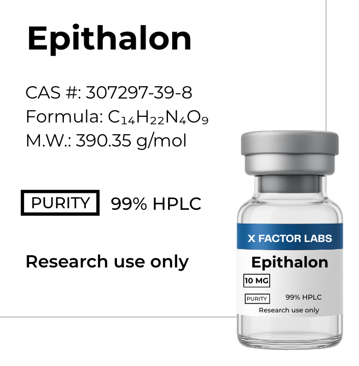 Epithalon is a synthetic tetrapeptide composed of alanine, glutamic acid, aspartic acid, and glycine. It is utilized in laboratory research to explore mechanisms related to telomerase activation, oxidative stress response, and circadian rhythm regulation. Due to its compact structure, Epithalon is suitable for in vitro applications involving gene expression and mitochondrial function studies.