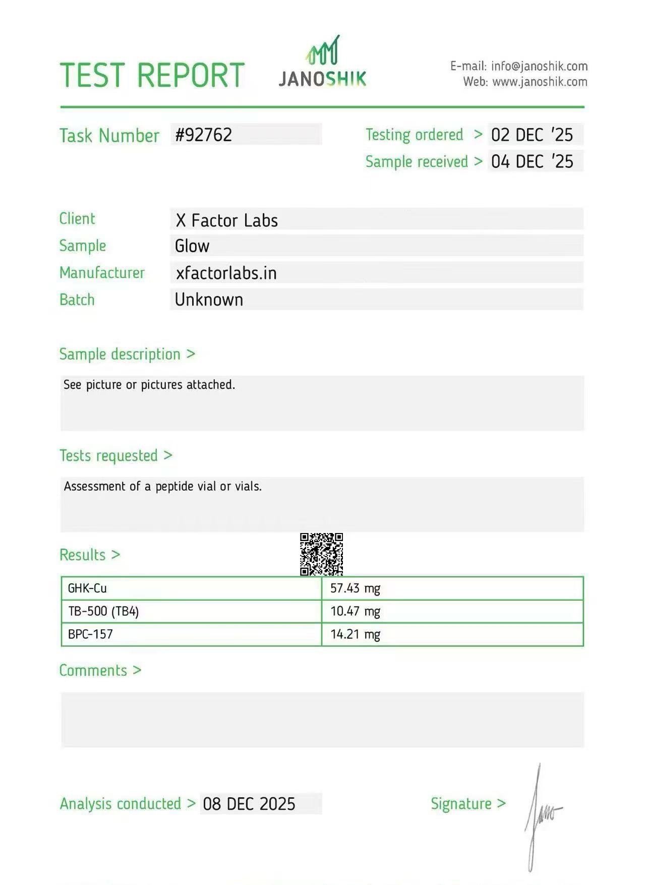 GLOW (Peptide Blend: BPC‑157 10mg + TB‑500 10mg + GHK‑Cu 50mg)