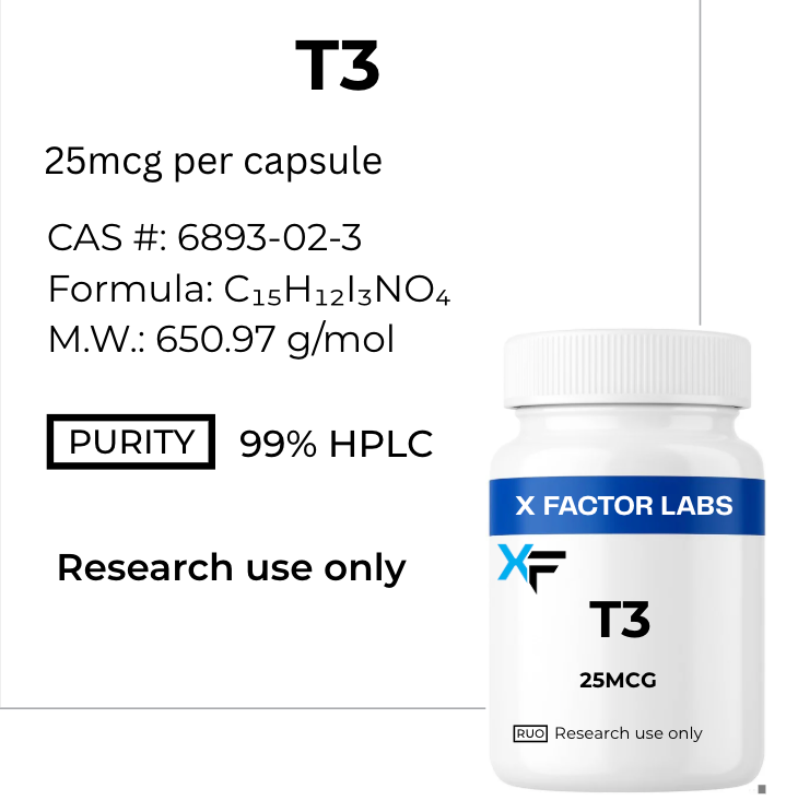 T3 is a synthetic form of the active thyroid hormone triiodothyronine (T3). It plays a crucial role in regulating metabolism, energy production, and fat-burning. Commonly used in clinical settings to treat hypothyroidism, it is also popular in performance and physique enhancement for its potent metabolic effects.
